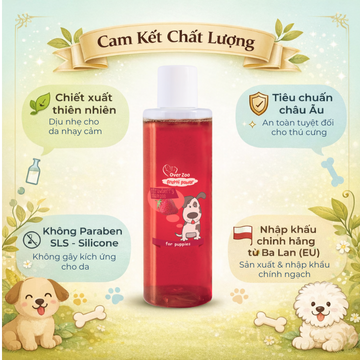 Da chó con mỏng và dễ bị kích ứng nếu sử dụng sản phẩm không phù hợp. Sữa tắm Over Zoo Frutti Power Strawberry được phát triển đặc biệt cho chó con, giúp làm sạch mà không làm tổn hại đến hàng rào bảo vệ tự nhiên của da.