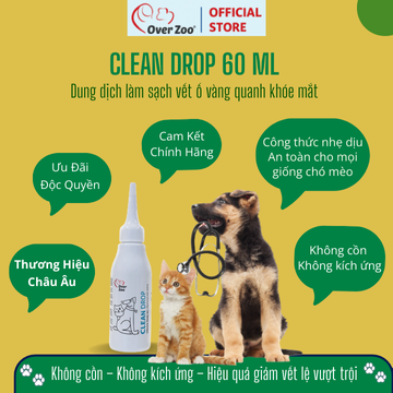 Tình trạng chảy nước mắt kéo dài có thể dẫn đến các vệt ố sậm màu quanh mắt, đặc biệt ở chó mèo lông sáng màu. Clean Drop Over Zoo được phát triển nhằm hỗ trợ làm sạch nhẹ nhàng vùng da quanh mắt, giúp cải thiện dần các vết đổi màu và mang lại vẻ ngoài gọn gàng, sạch sẽ hơn cho thú cưng.